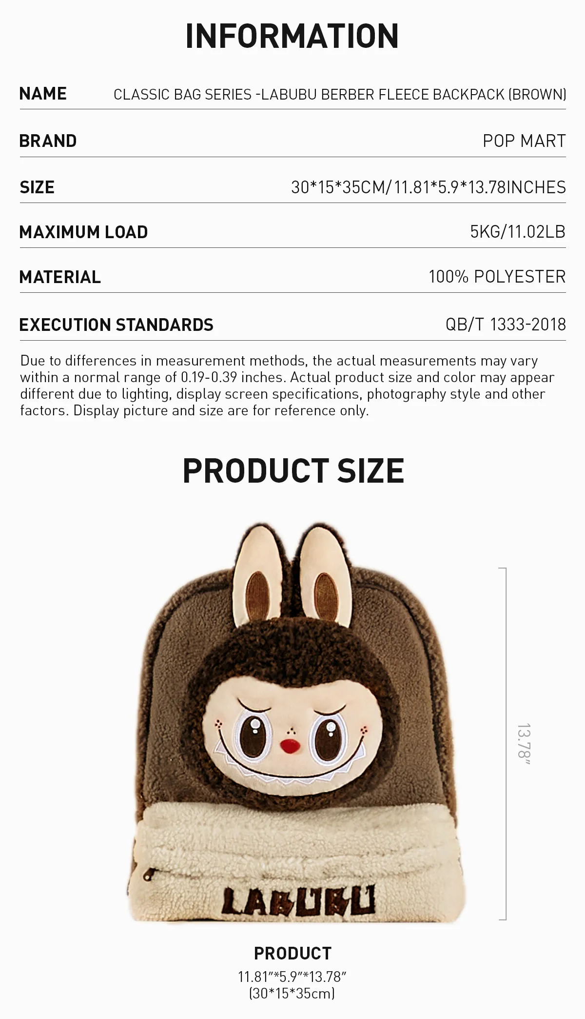 Classic Bag Series-LABUBU Berber Fleece Backpack (Brown)