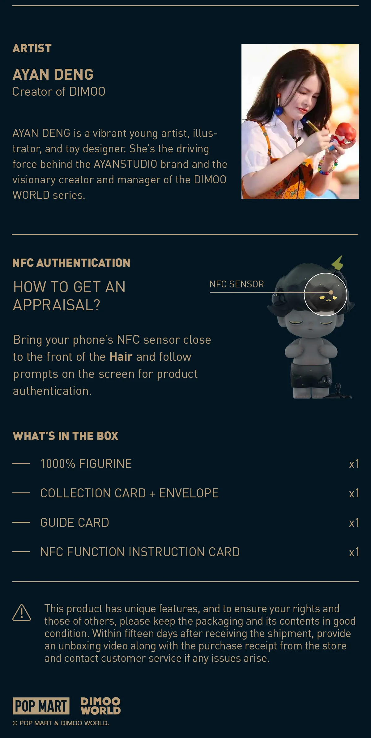 All products in our store are 100% genuine. You can verify their authenticity by checking our official website or visiting our physical stores. Our mission is to solve the issues you may encounter when purchasing trendy blind boxes, making the process more convenient and professional. We do not want to lose your trust due to counterfeit products. We hope you will introduce more friends to shop with us at popbox. Additionally, we have official authorization within China, and Pop Mart provides invoices. Don’t worry about any issues with the purchasing process. We wish you a pleasant and worry-free shopping experience
