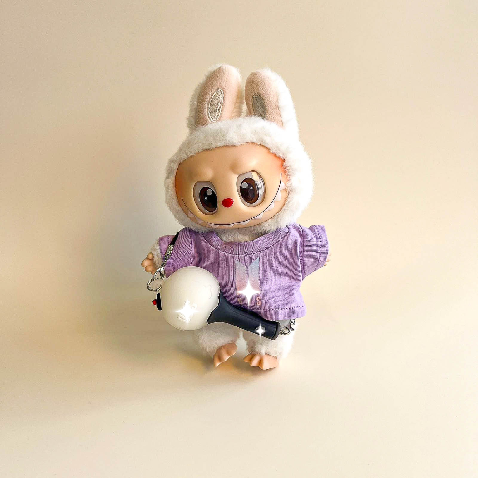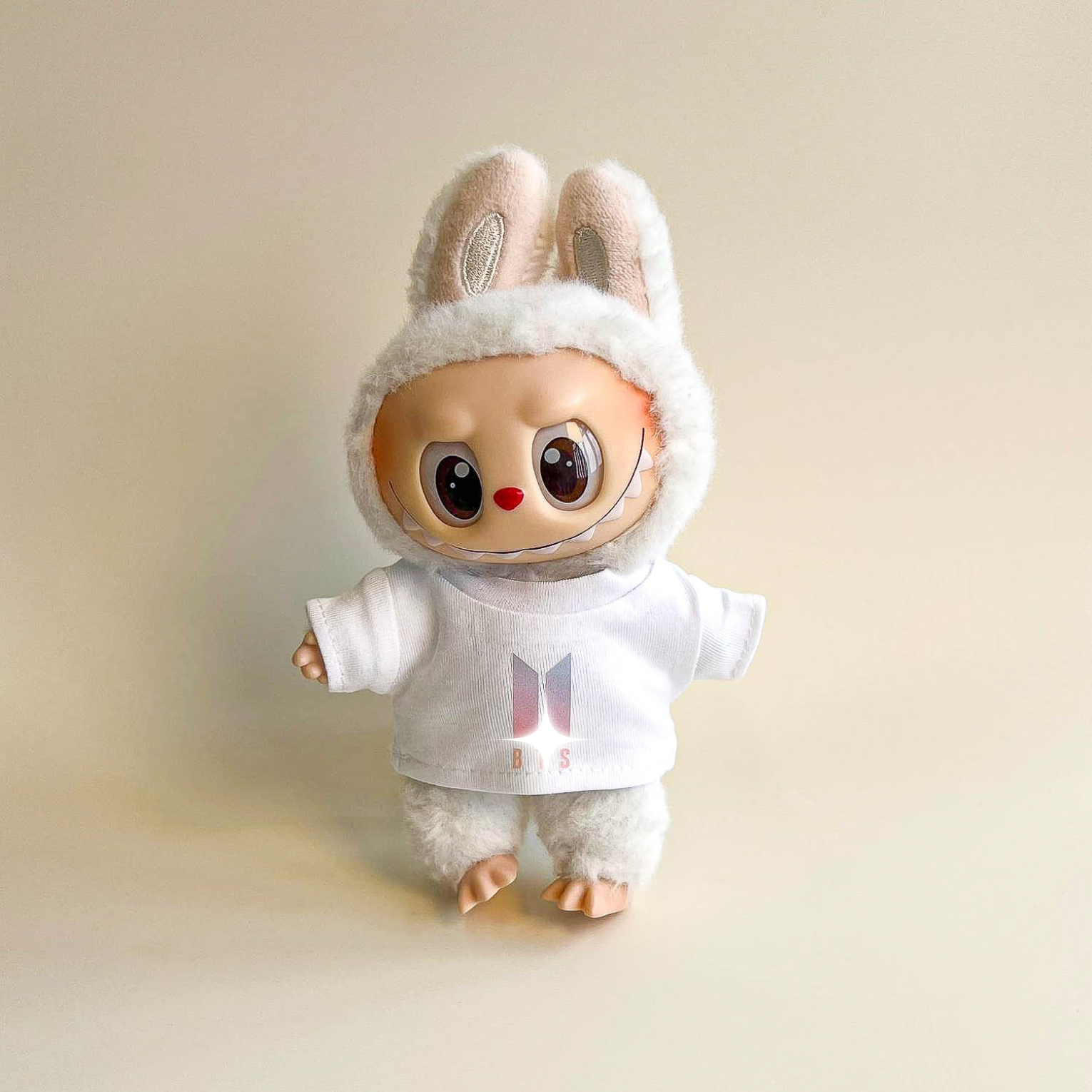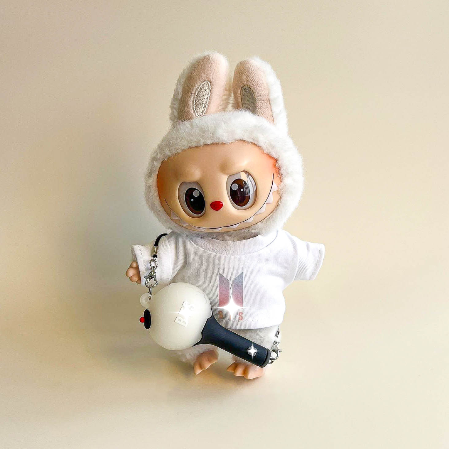 Bring vibrant energy to your Labubu with the Bullet Proof Idol Tee Outfit in colored logo. A bold color‑logo T‑shirt pairs with a mini fan lightstick on a strap for a lively. fan‑ready look. A collector‑focused upgrade to your Labubu clothes. Labubu outfits. and refined Labubu fashion.